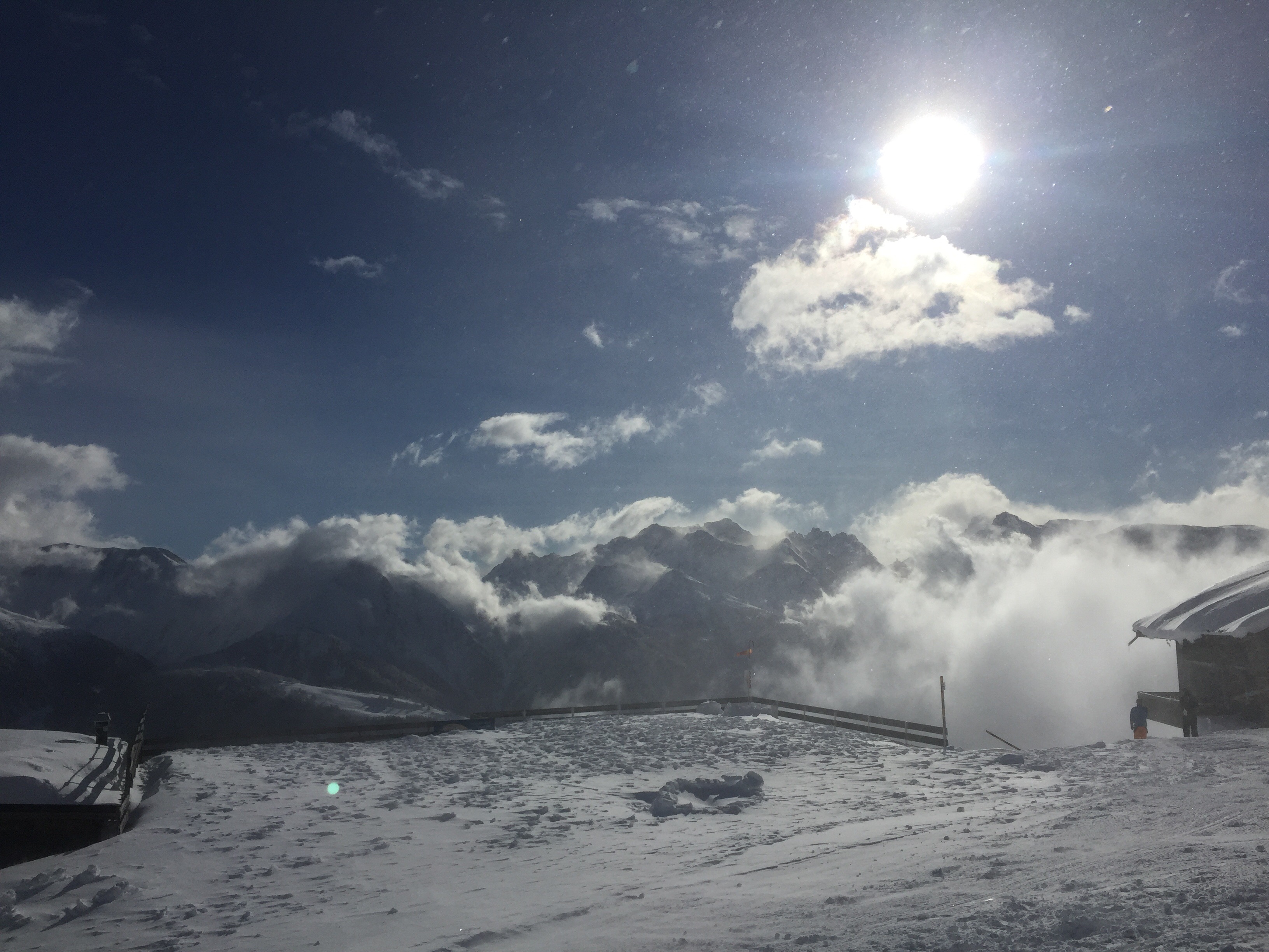 Fast alle Lifte stehen still, selbst die grosse Gondel hat heute ca. 5min benötigt zum Einparken.