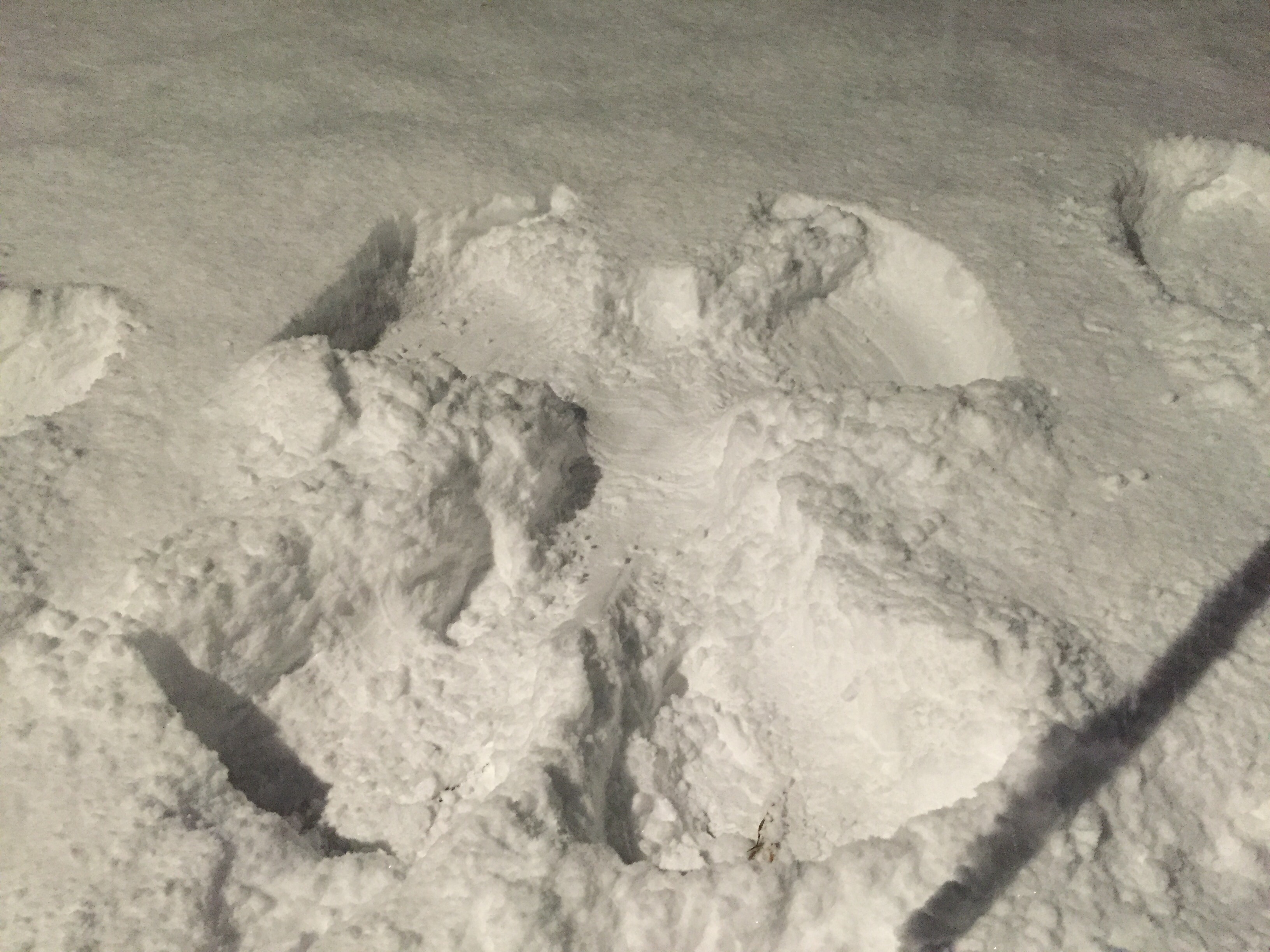 Dem abendlichen Spaziergang durch den Schnee haben sich sage und schreibe 2 Schüler angeschlossen. Die erlebten ein Fiesch, das bis zu den Achseln im Schnee versunken war.