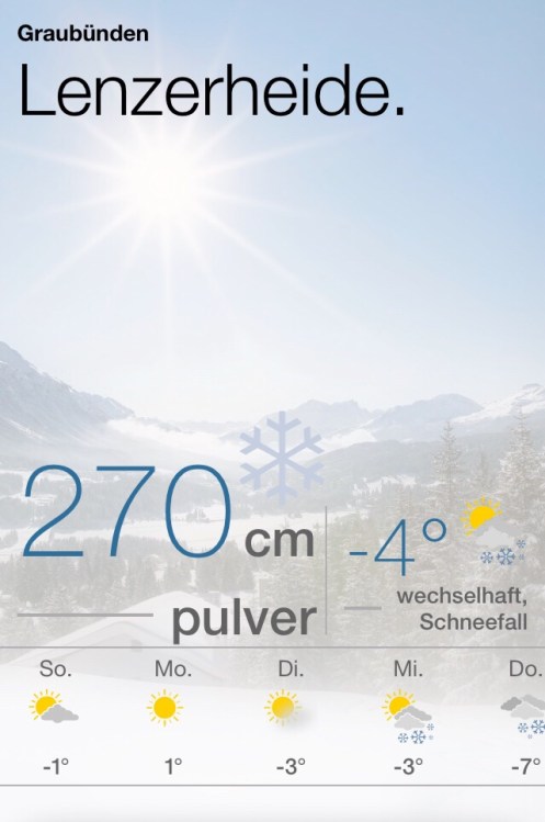 So, der letzte Schultag ist geschafft. Bald gehts los ins Bündnerland:-) Die Aussichten lassen schon einmal die Vorfreude hochleben.
