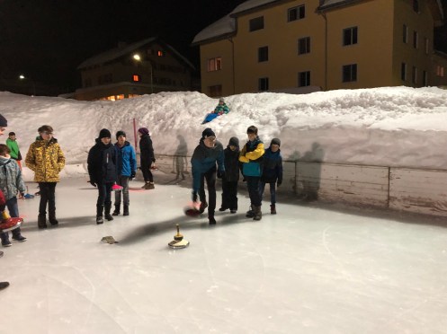 Sunne und Schnee, mir wend no meh! Und au de Fortschritt het me gseh. Zum Znacht Tortellini und Vanille Creme, do werdemer no richtig Fan. Ping Pong Turnier und Spass uf em Is, d Chind mönd trotzdem is Bett, ach wie fis… 😉