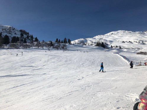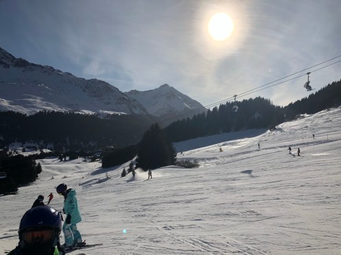 Oh, wie schön ist es so in die Skilagerwoche zu starten. Alle waren voller Vorfreude endlich konnten die Bretter, egal ob eins oder zwei, wieder angeschnallt werden. Die Sonne lacht und die Pisten sind auch, wohl dank Schneekanonen, sehr gut im Schuss. Egal ob am Anfängerhügel oder das ganze Gebiet bis nach Arosa erkundend die Freude am Wintersport war spürbar.