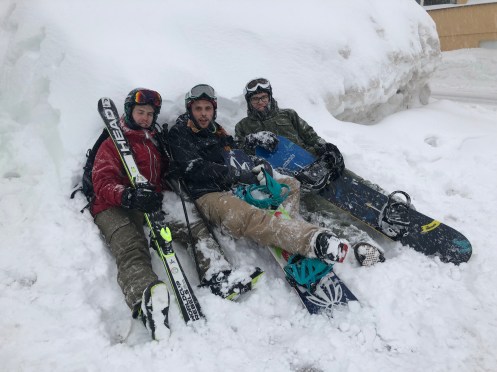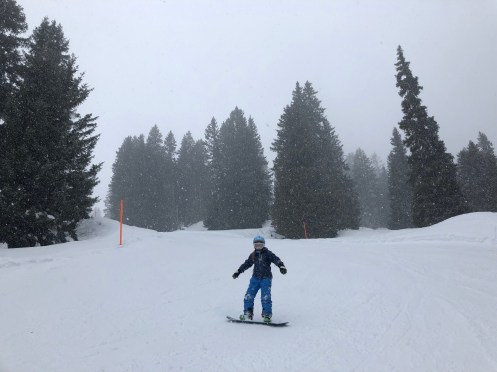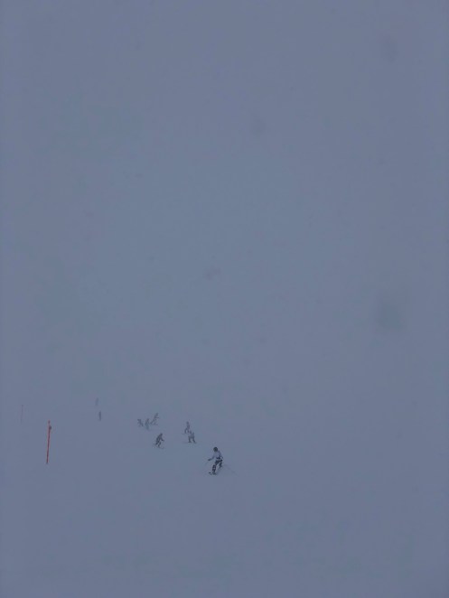 Gestern war das Wetter so gehts so… Schneefall schon zum Frühstück. Aber als unerschrockene Maschinen sind wir natürlich trotzdem auf den Berg. Leidensfähigkeit ausbauen! 🙂
