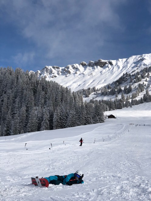 Heute ist der letzte Tag, leider. Das Wetter spielt nochmal mit, auch wenn die Kräfte nicht mehr bei allen wollen. Aber chillen gehört ja zum boarden, wie der Helm auf den Kopf! 😉